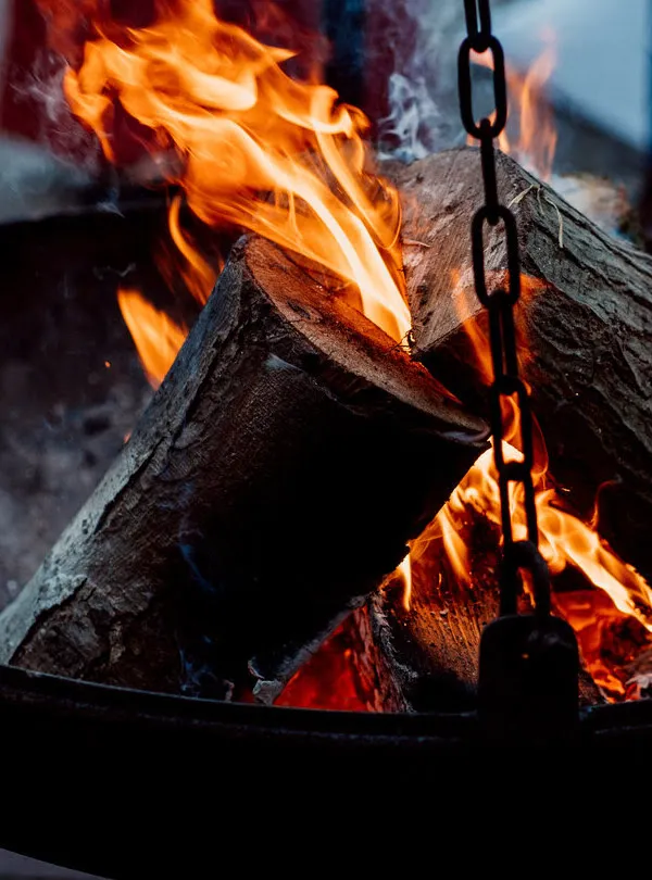 We starten samen aan lange, sfeervol gedekte tafels, waar je uitgebreid kunt genieten van een Paasdiner vol karakter. Halverwege nemen we een kleine break buiten bij het vuur. Terwijl de vlammen dansen, deelt onze ‘Poaskearl’ verhalen over oude paasgebruiken en tradities, met een klein gerechtje om te proeven. Binnen sluiten we af met een zoete finale.