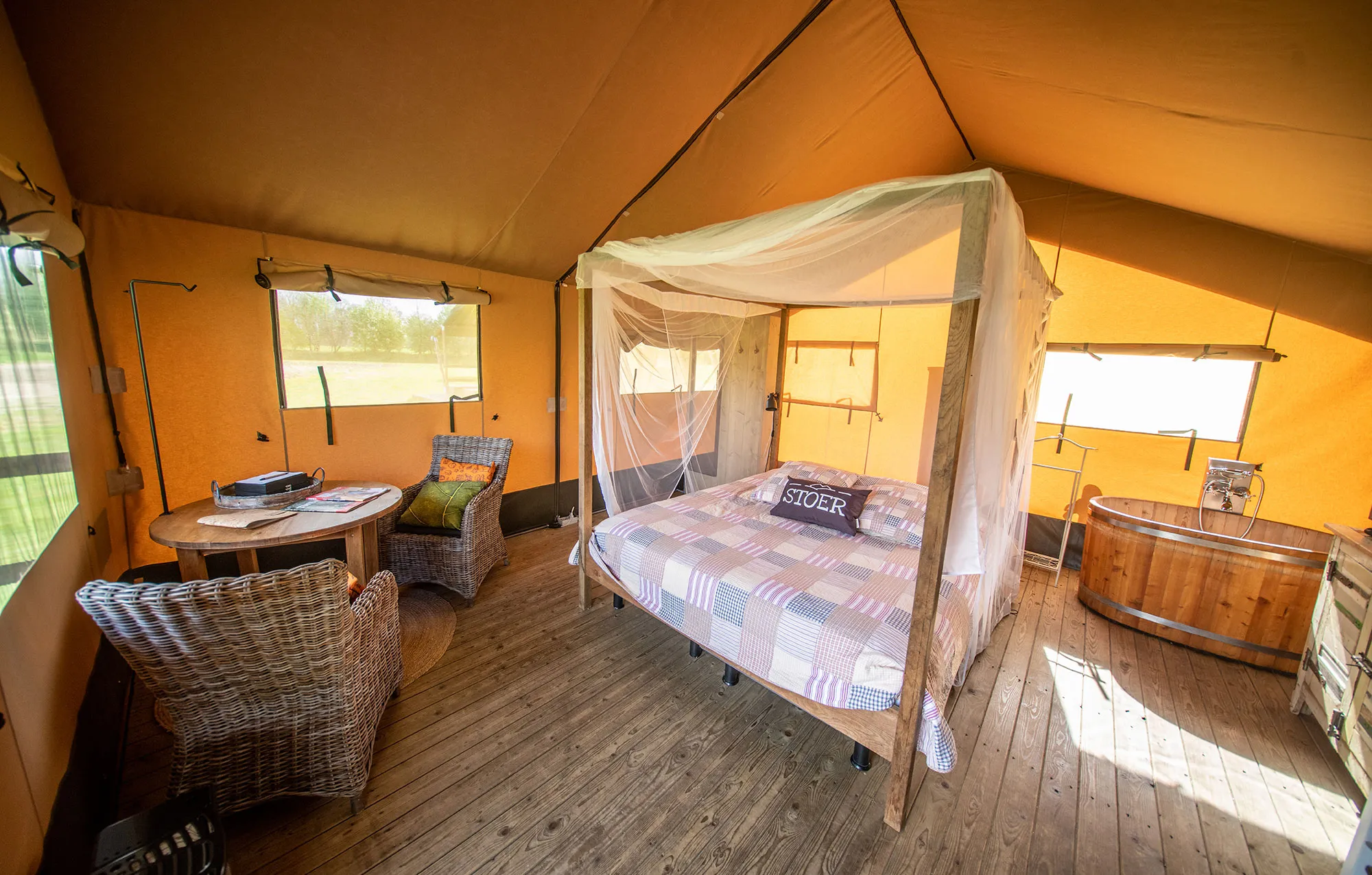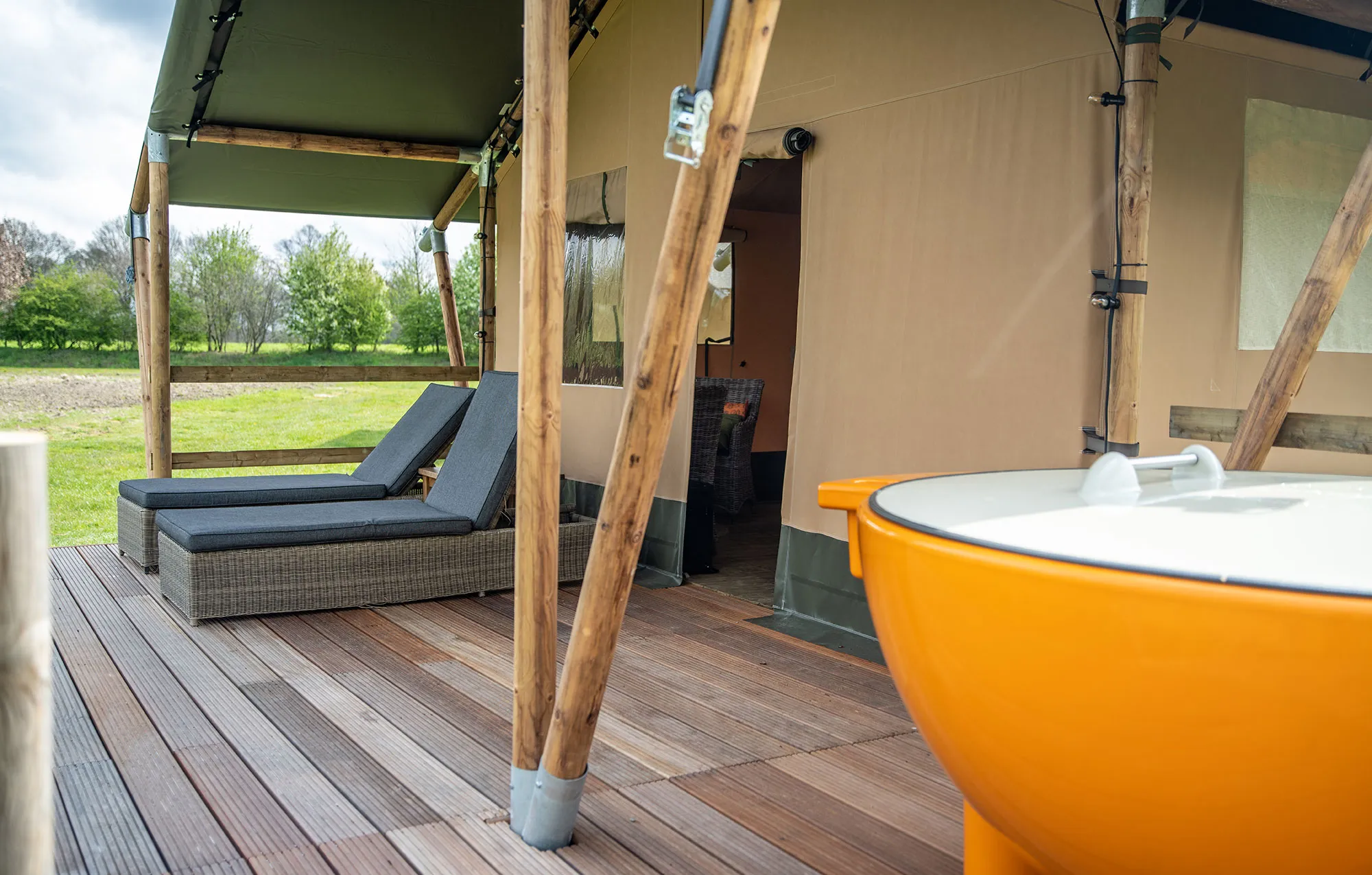 - Enkele lodgetenten zijn voorzien van een Dutchtub: een hottub van Nederlands design