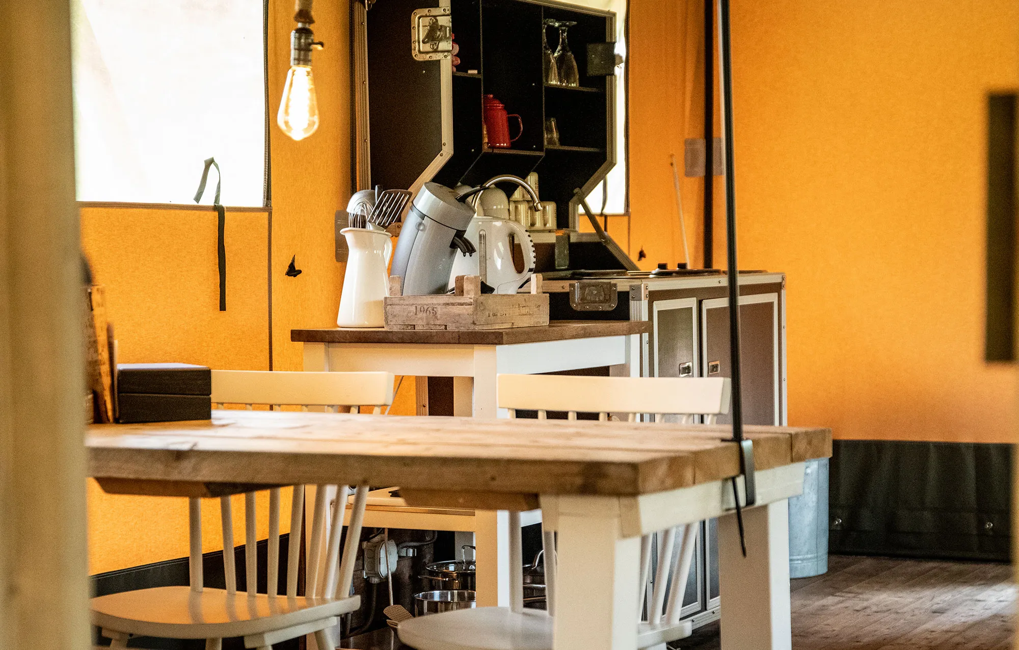 Logeren in een lodgetent is mogelijk van begin april tot half oktober.